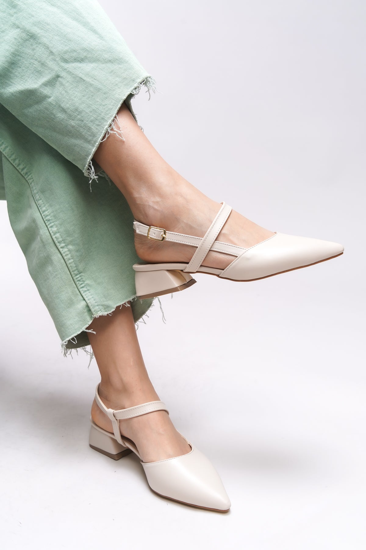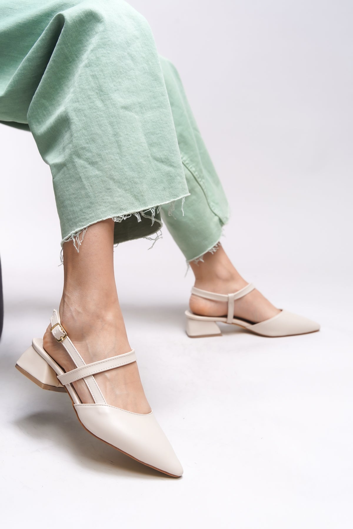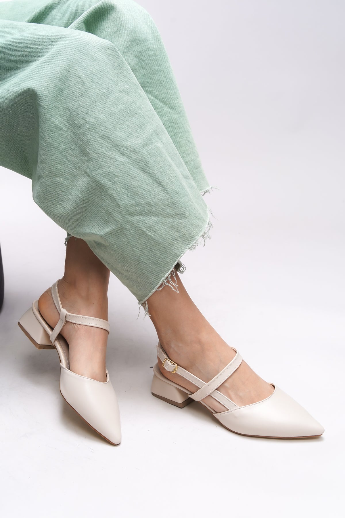 Riccon Giselvara Kadın Arkası Açık Sivri Burun Topuklu Ayakkabı 0012341 Ten Cilt